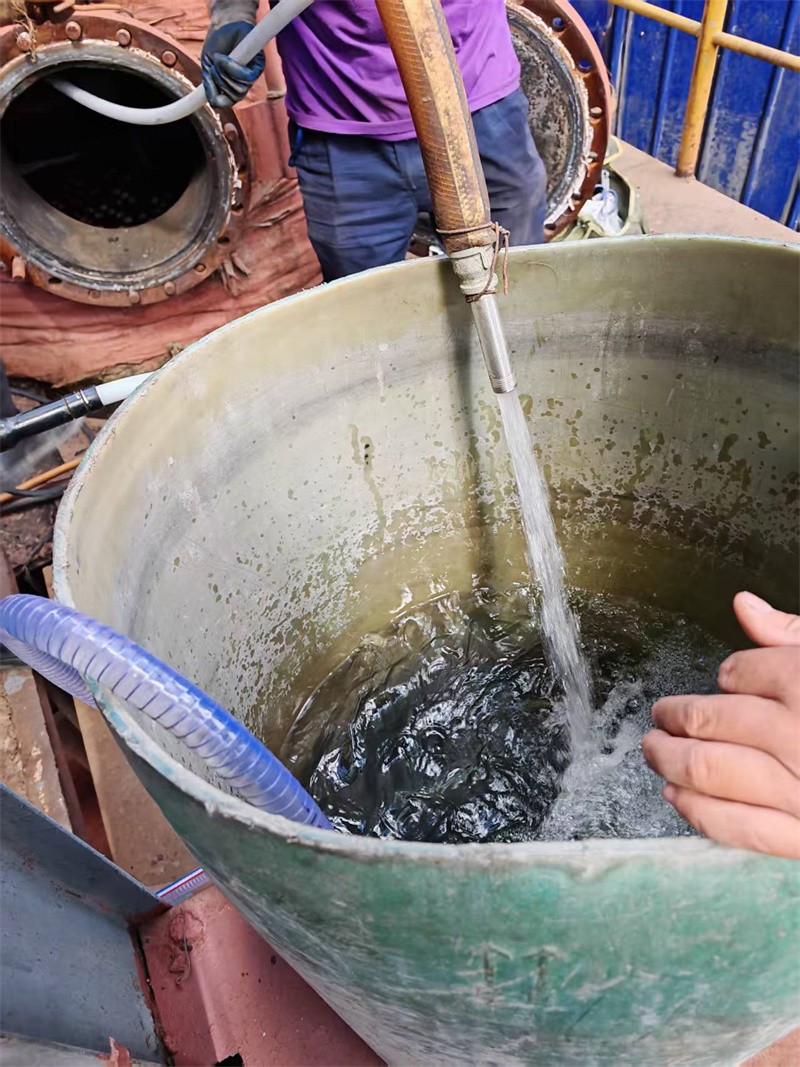 2025年6月6日、迎著37℃高溫,晴空萬里,找不到涼快的地方,河南省安陽縣永和鎮北街村糠醛廠,河南省多溢利生物科技有限公司總經理葉亦林委派彭美燕生產廠長總工程師與河南都市機械設備有限公司喬俊陽主任,王永勝技術員,聯合研制開發了廢水蒸發器多管徑式內徑28-32-34mm廢水蒸發器鍋爐清洗機鍋爐管道疏通機通管機,管道管子直徑38-36-32mmX5m,經過多次現場試驗,使用直徑20mmX13mmX10m軟軸及直徑25mmX16mmX10m+5米軟軸,配直徑25-26-30-31-32-33合金鋼鉆頭,不斷的調換軟軸及鉆頭鉆的快,簡單方便,輕松的解決了管道內結垢堅硬,堵死管道無法解決難題!